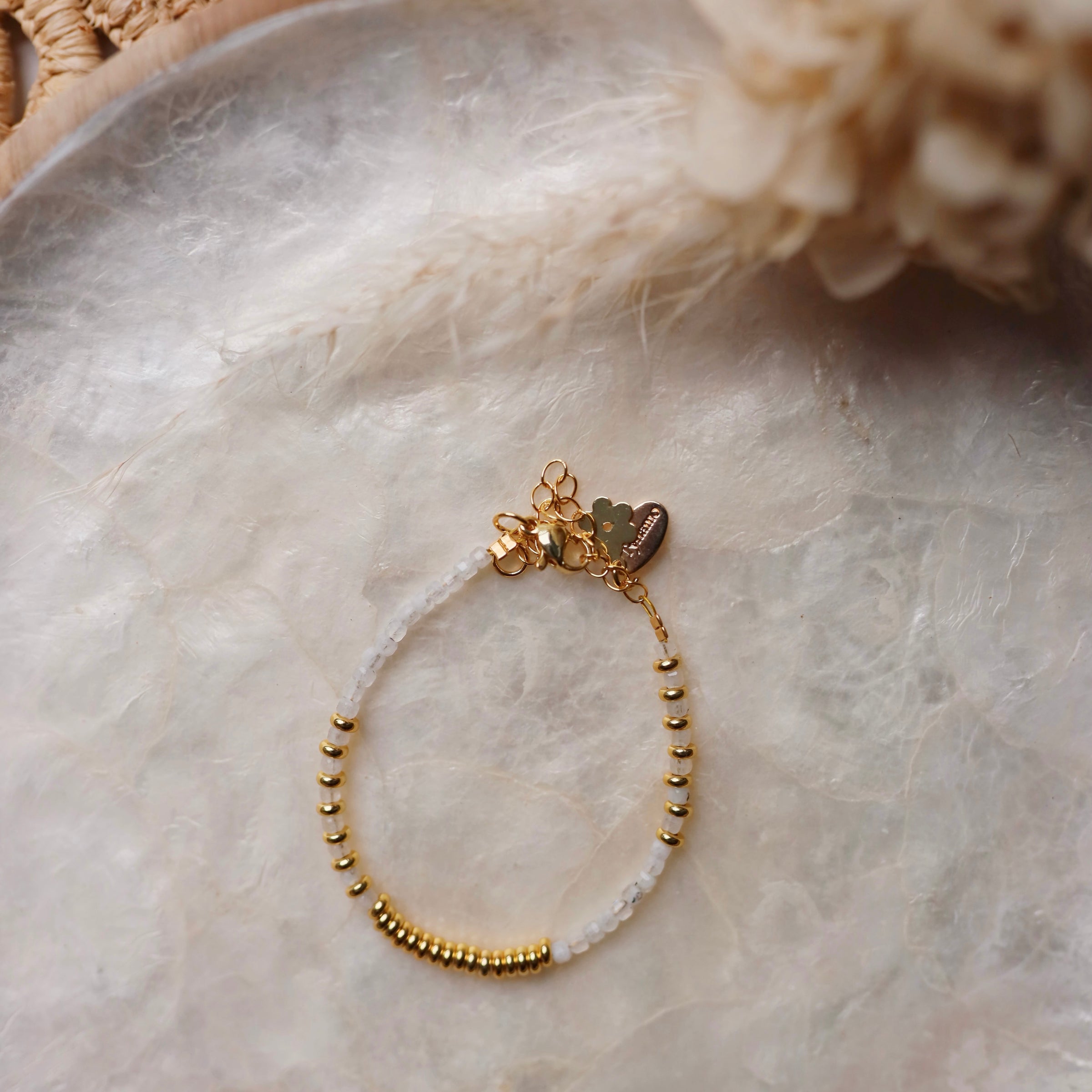 Description : Bracelet emblématique de la marque Tyhamo réalisé avec des pierres fines en Pierres de Lune carrées 2,5x2,5mm