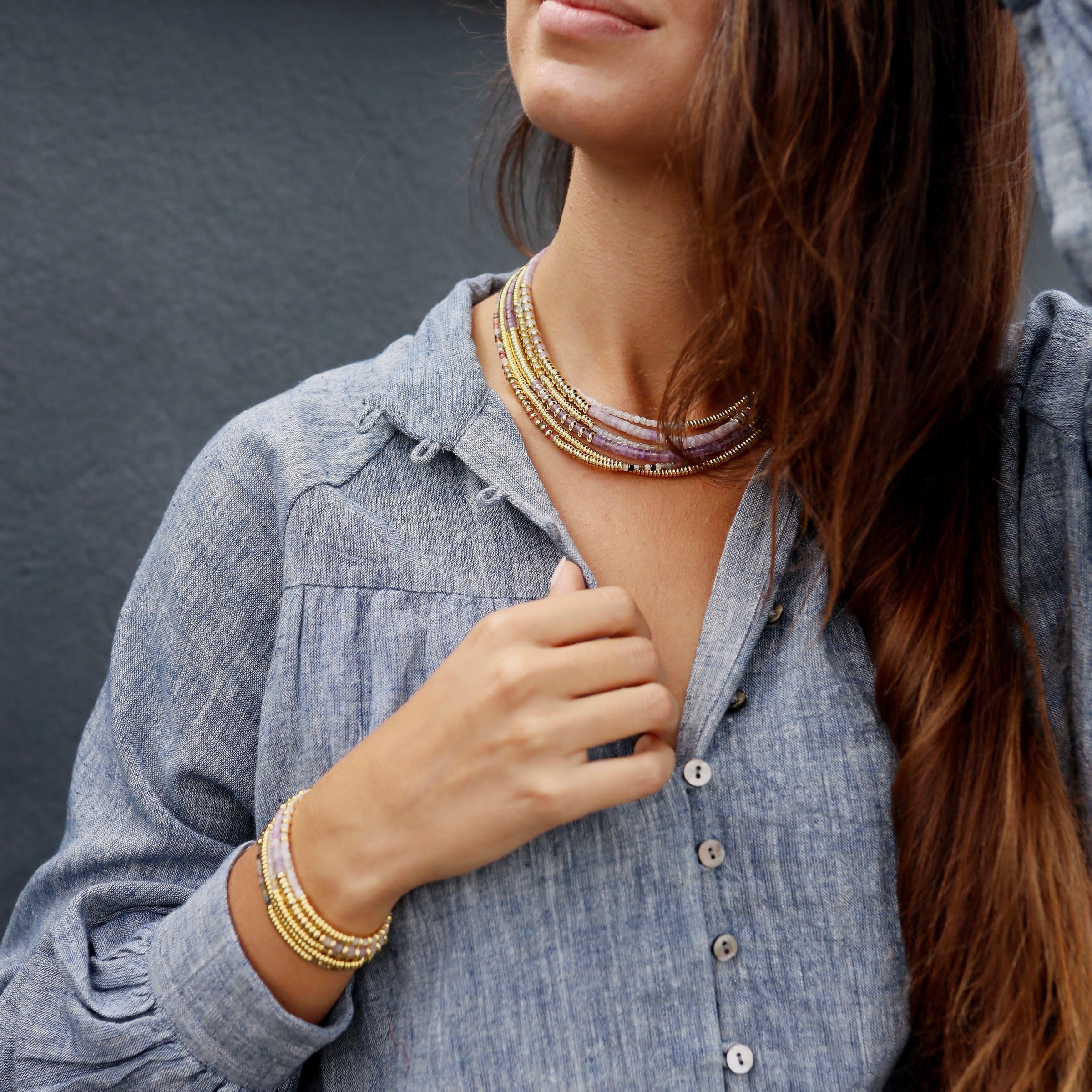 Chaque bijou est unique car il est créé à partir de pierres fines, naturelles et/ou de perles en verre venant du monde entier et précieusement sélectionnées par Morgane.