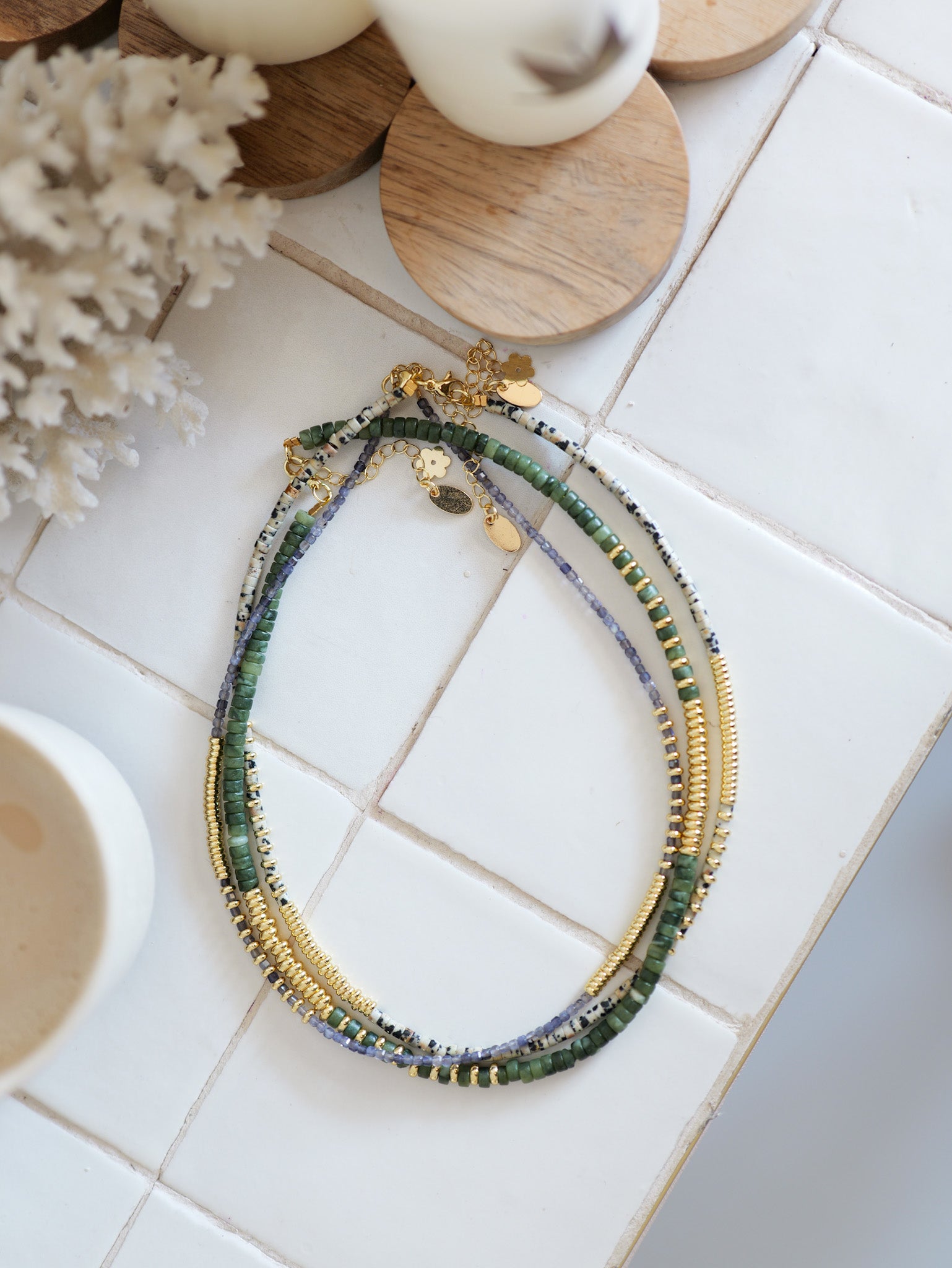 Chaque bijou est unique car il est créé à partir de pierres fines, naturelles et/ou de perles en verre venant du monde entier et précieusement sélectionnées par Morgane.