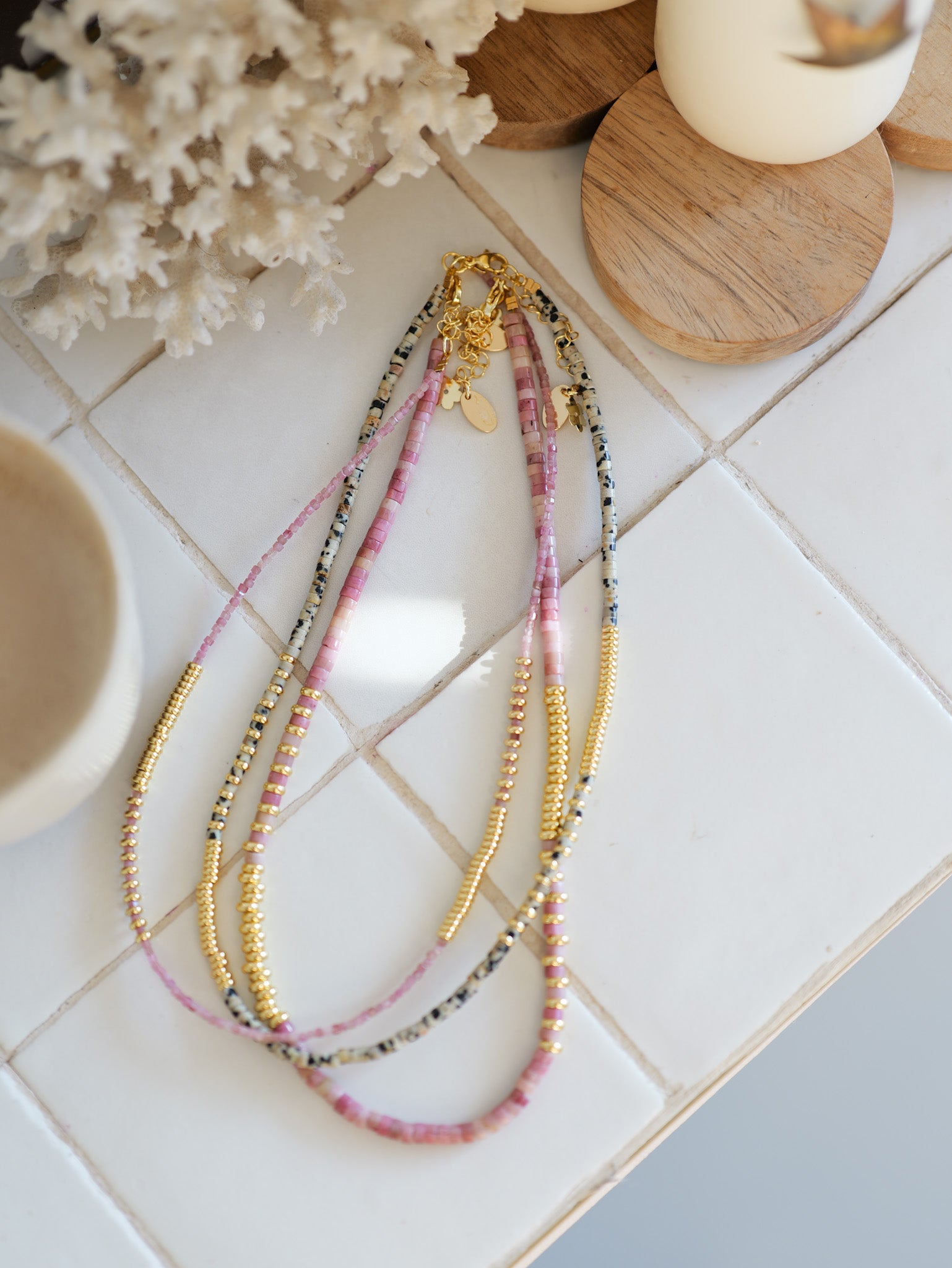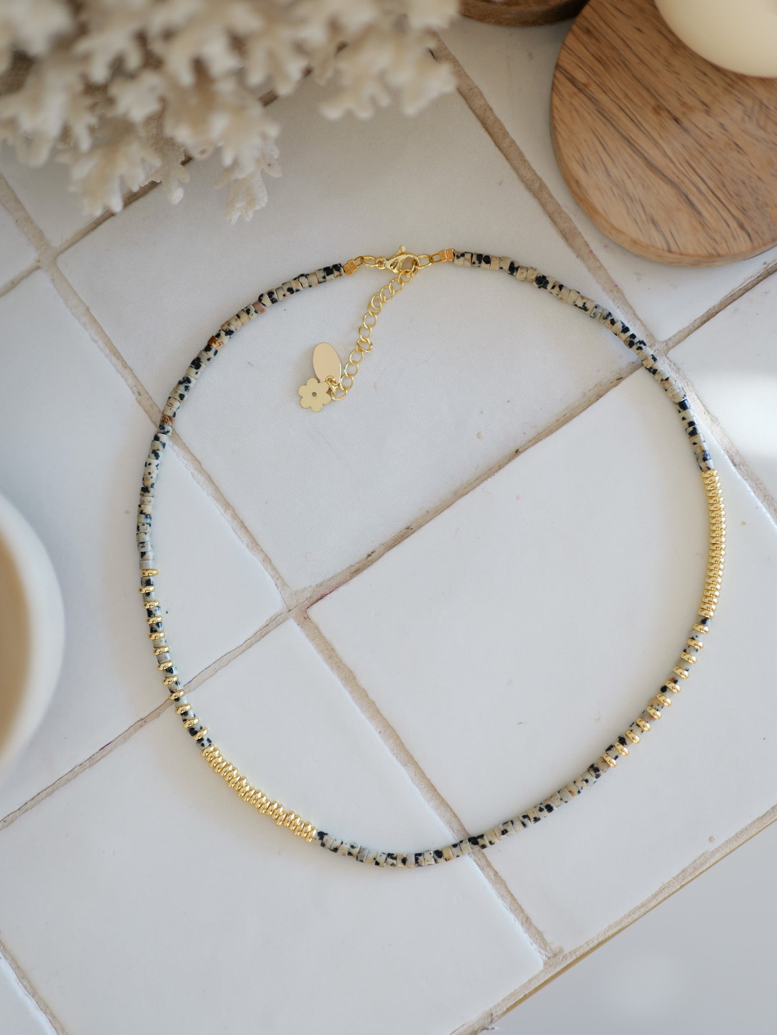 Description : Collier emblématique de la marque Tyhamo réalisé avec des perles en Jaspe Moucheté (2/3mm).