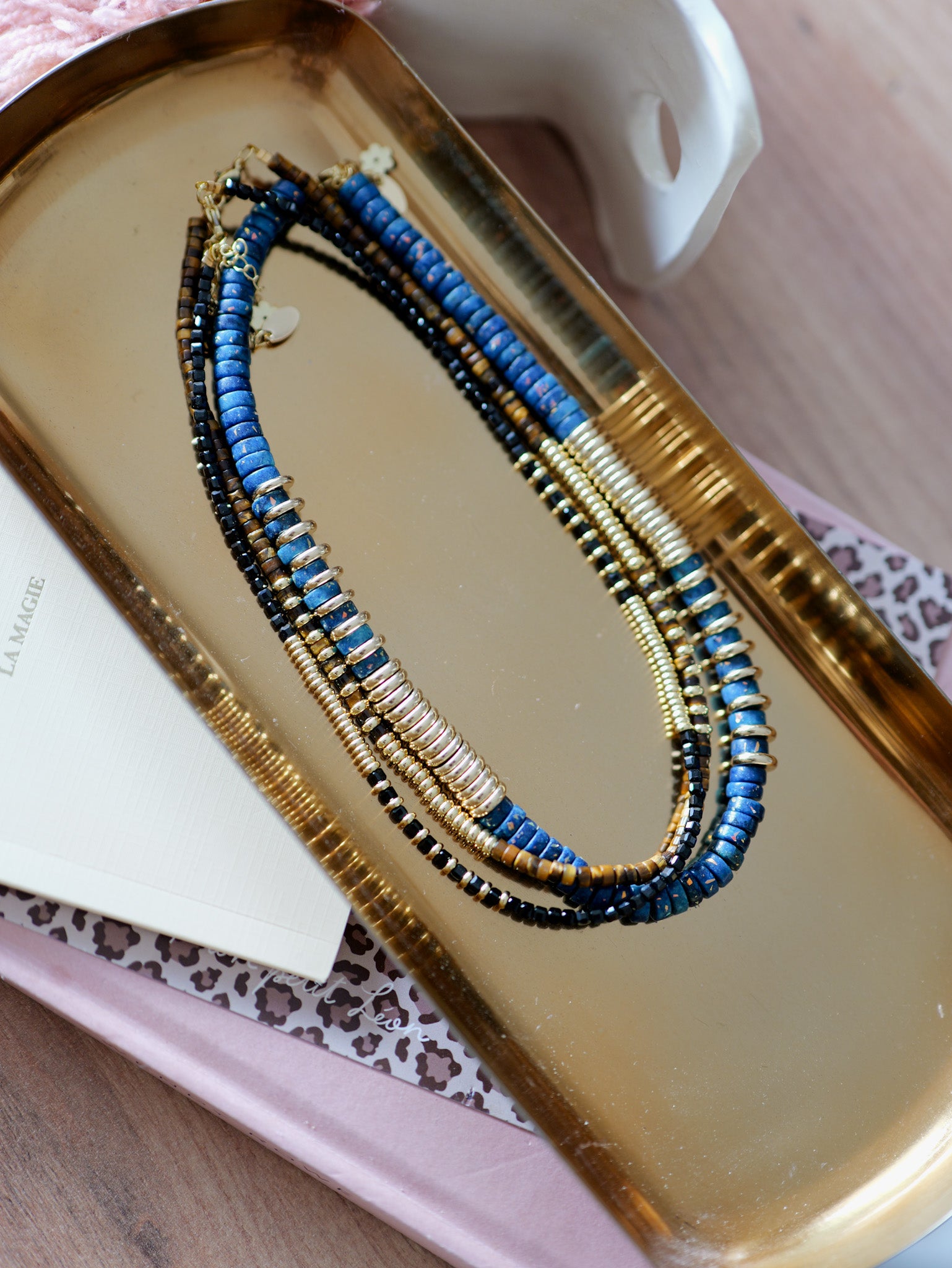 Chaque bijou est unique car il est créé à partir de pierres fines, naturelles et/ou de perles en verre venant du monde entier et précieusement sélectionnées par Morgane.
